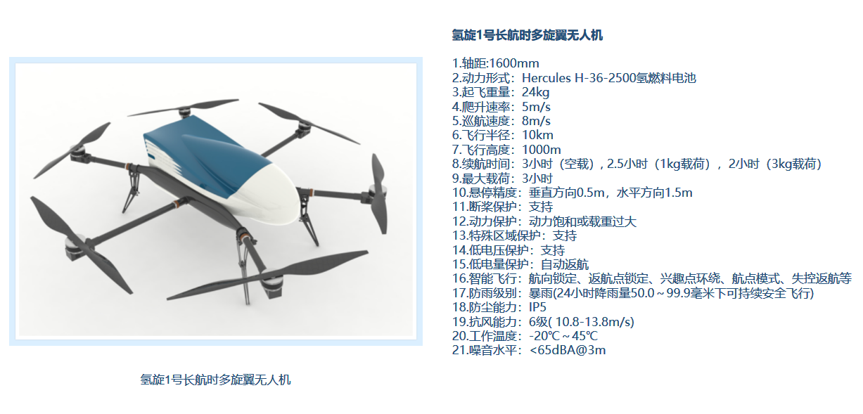 HydroCopter 1氢旋1号,有效载荷1kg~3kg,续航2小时以上的氢动力多旋翼无人机