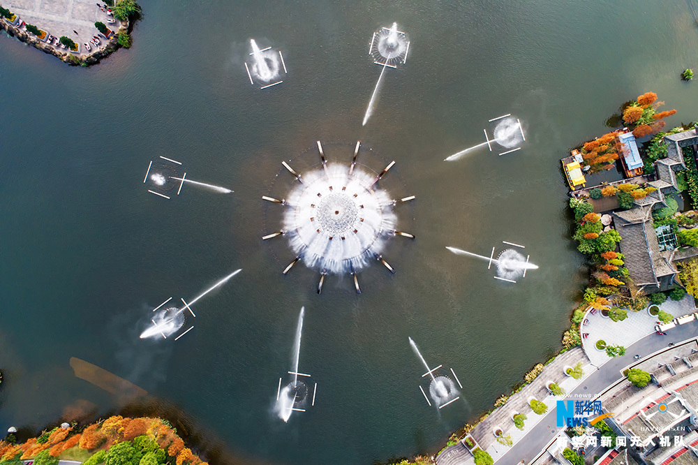秀湖国家湿地公园位于重庆市璧山区,这里城湖相接、山环水绕,处处是亭台楼榭、廊桥水岸,风景秀美。图为无人机航拍视角下的重庆秀湖国家湿地公园,冬日里平添几分静谧。新华网发(龚祖章 摄)