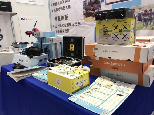 本届展览会展示了各级各类的教学设备,涵盖了新课标新高考改革方案、人工智能与机器人、创客教育及STEAM教育、互动课程解决方案、优质资源共享等。其中,我们发现无人机教学产品在展会中受到广泛关注。