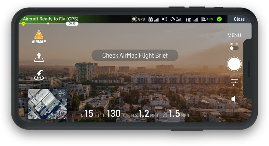 iOS和Android上的AirMap for Drones移动应用程序中提供了实时地理围栏警报。实时地理围栏警报仅适用于具有AirMap for Drones飞行模式的DJI无人机操作员。