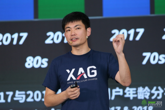 彭总表示:在2018年里极飞的无人机数量增长了3倍之多,极飞的运行人员和操作人员也是成倍的增长。据统计了解,从去年开始中国就已经成为了全球无人植保机用量最大的国家。然而,目前价格成为目前植保服务的最大的痛点,比如今年在新疆已经下降到6-8元每亩。为何价格变化如此迅速,目前植保作业面积仅占植保面积的5%,那之后应该如何改变呢。我们统计数据表明,在2017年时90后的极飞群体占比很多,然而到了2018年时90后的年轻人数量下降,但是70后和60后的人数却成倍的增长。这些之前就深耕于农业的60后和70后的人群,已开始关注和发现无人机植保所带来的好处。另一项数据表明,无人机作业半径在50km的半径范围以内的无人机占66%,只有13%的植保用户超过500km的服务半径。这说明,大部分的植保用户只服务当地区域,而只有少数植保团队是全国服务。