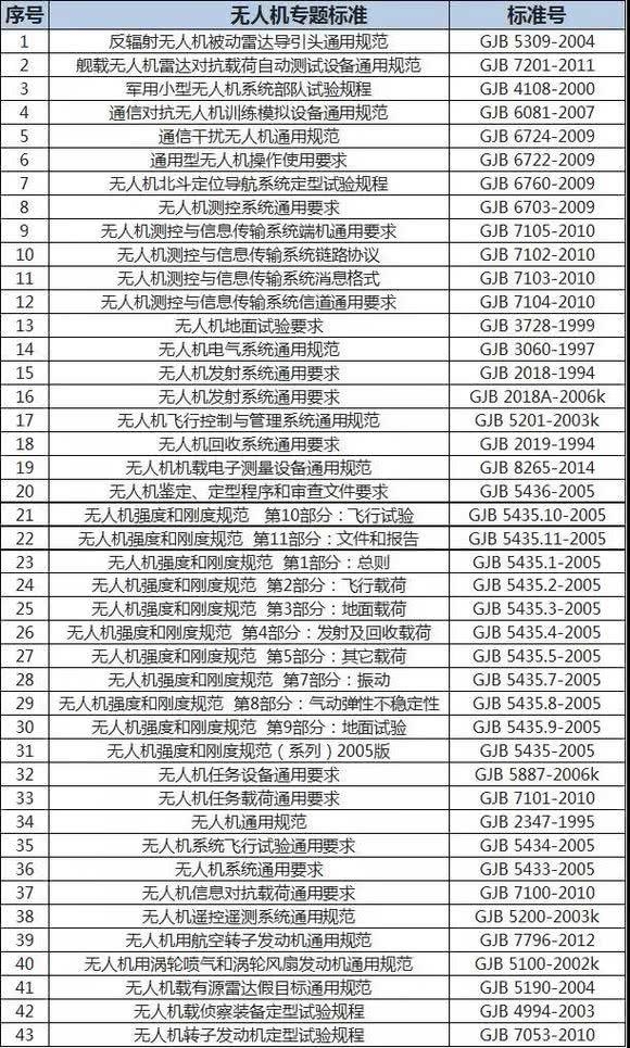 特别是无人机领域的GJB标准,基本上已经成为了国内军民无人机设计制造的规范性标准,也就是说就算是造四旋翼的民用无人机,很多厂家都是按照GJB标准来走的。