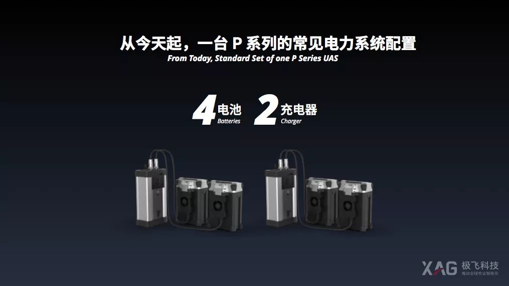 以过往典型的 8 组电池 4 组充电器的电力配置为例,有了快速充电的智能电池和充电器,只需 3 组电池和 2 组充电器,即可保证 2019 款 P30 在田间连续运转。而 “电力无忧计划” 配备了4 组电池和 2 组充电器,提供足够的冗余电力,让 P 系列能够持续作业,完美解决电力焦虑,大大降低了植保无人机的从业门槛。