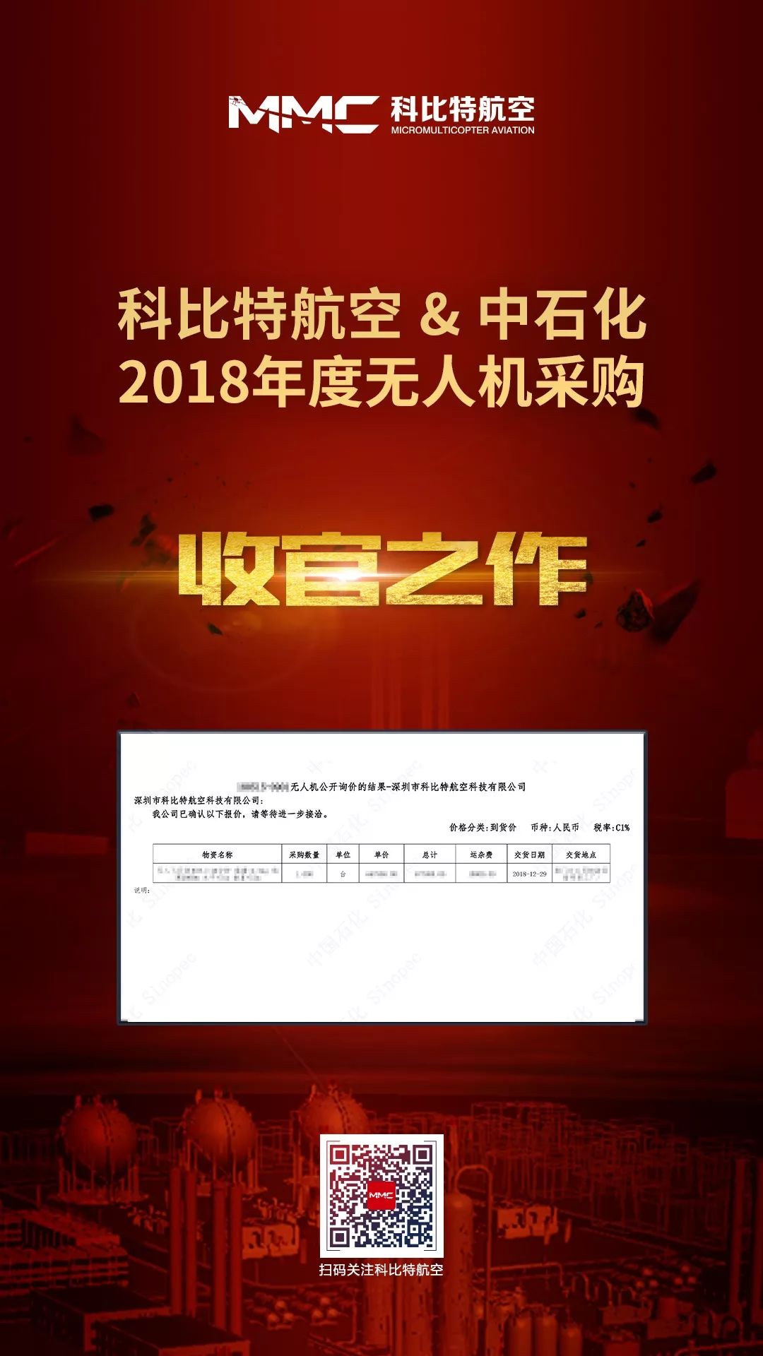 作为全球炼油能力最大的石油公司中石化,早在2016年就正式与科比特航空合作,为无人机进入石油石化行业起到带头作用。近日,中石化与科比特航空再度签订采购合同,订单金额再创新高,科比特航空成为中石化2018年度最大的无人机供应商。