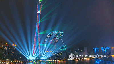 琴声悠扬 醒狮跃动 无人机表演绚烂