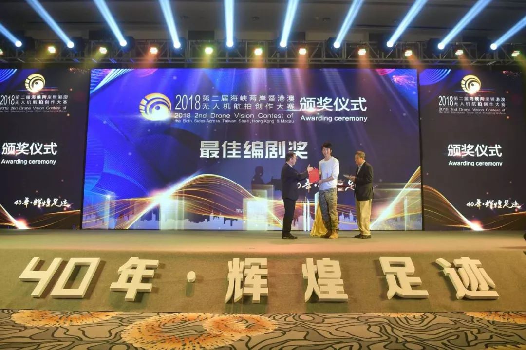 编剧是一部优秀航拍作品的核心与灵魂,深圳市人民政府台办巡视员雷鸣先生揭晓了最佳编剧奖获奖作品及获奖选手,来自深圳的深蓝战队吴剑斌夺得此奖,台湾资深影视导演李岗先生宣读了大赛评委评语,随后两位嘉宾还为最佳编剧奖获奖选手颁发了荣誉证书与奖盘。