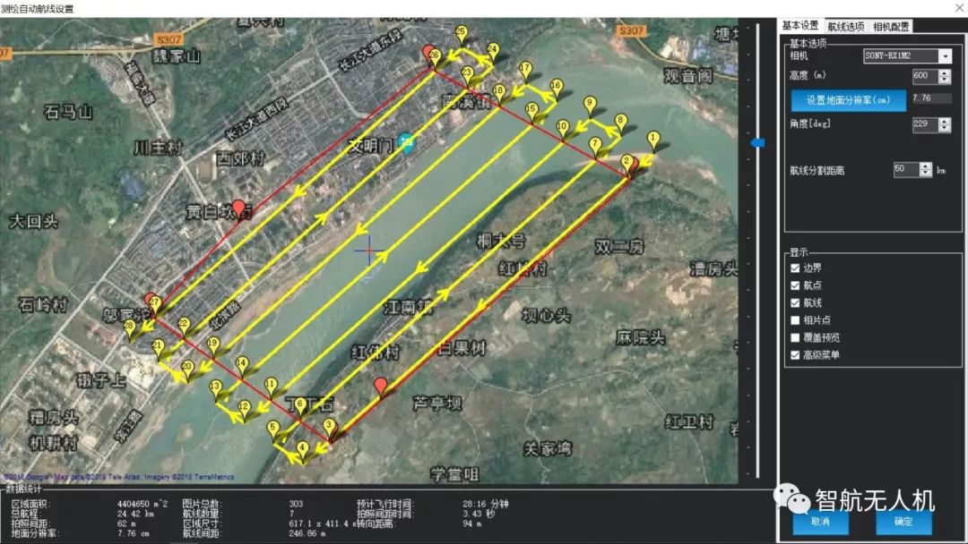 区域观测面积4404650平方米,总航程24.42千米,飞机高度600米,地面分辨率7.76cm(这才叫高精度)