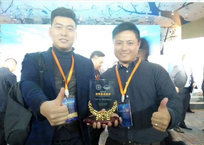 开云足球华少与高巨创新杨海蛟合影祝贺获奖