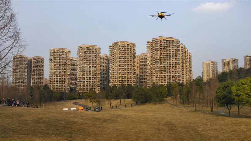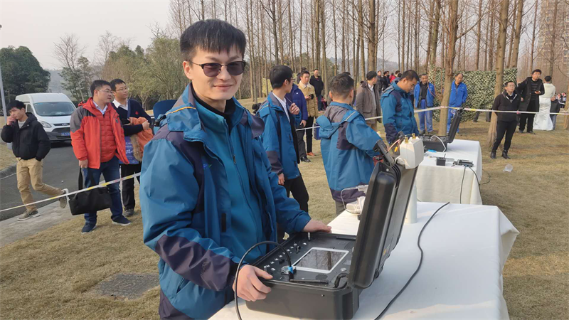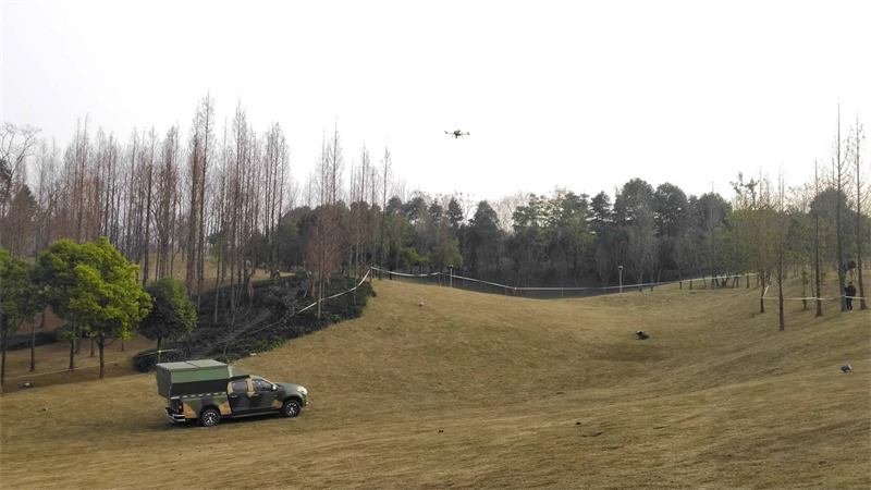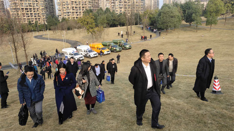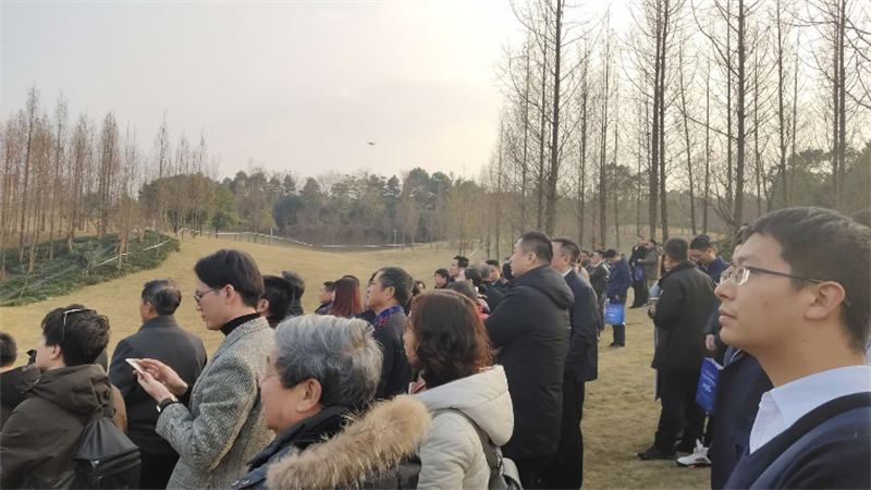 众嘉宾移至室外观看无人机飞行/开云足球摄