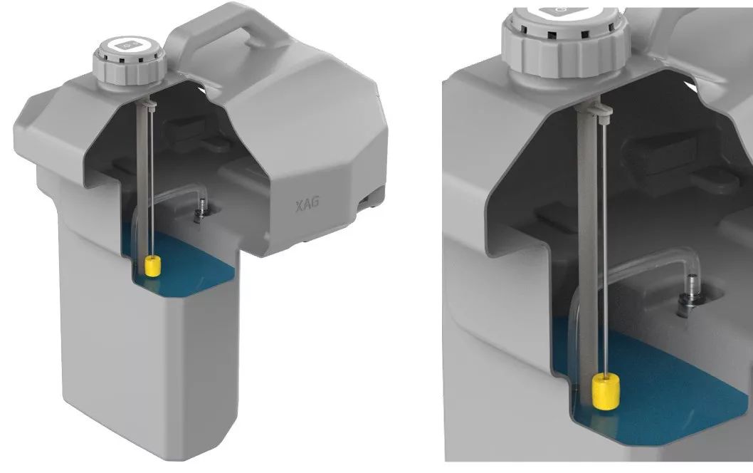 同时,智能药箱的结构呈 “ 7 ” 字型,底部形状较窄,越往下,刻度反而越精细。也正因为这样,大家关心的药箱还剩多少药、如何更高效地规划航线等问题,都能得到更好的解决。