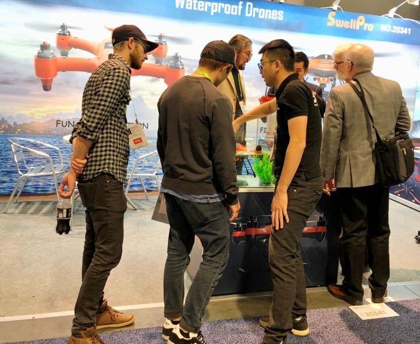 美国时间2019年1月8日,国际消费电子展(CES 2019)在美国的拉斯维加斯盛大开幕。在这里汇聚了全球最前沿之电子技术和应用技术,同时还吸引着数以万计的专业观众和展商在此交流和展示。全球防水无人机开拓者—斯威普科技连续3次亮相CES展,并携热卖产品水手3+防水无人机、雨燕便携防水无人机、智魔入门级航拍无人机,以及相关配件产品PL3(4K相机投放器)和新品PL4(夜视相机投放器)。在现场,斯威普防水无人机不仅展示了无人机整机的高性能防水效果,而且连遥控器都可以浸泡水中,现场观众连连称赞。