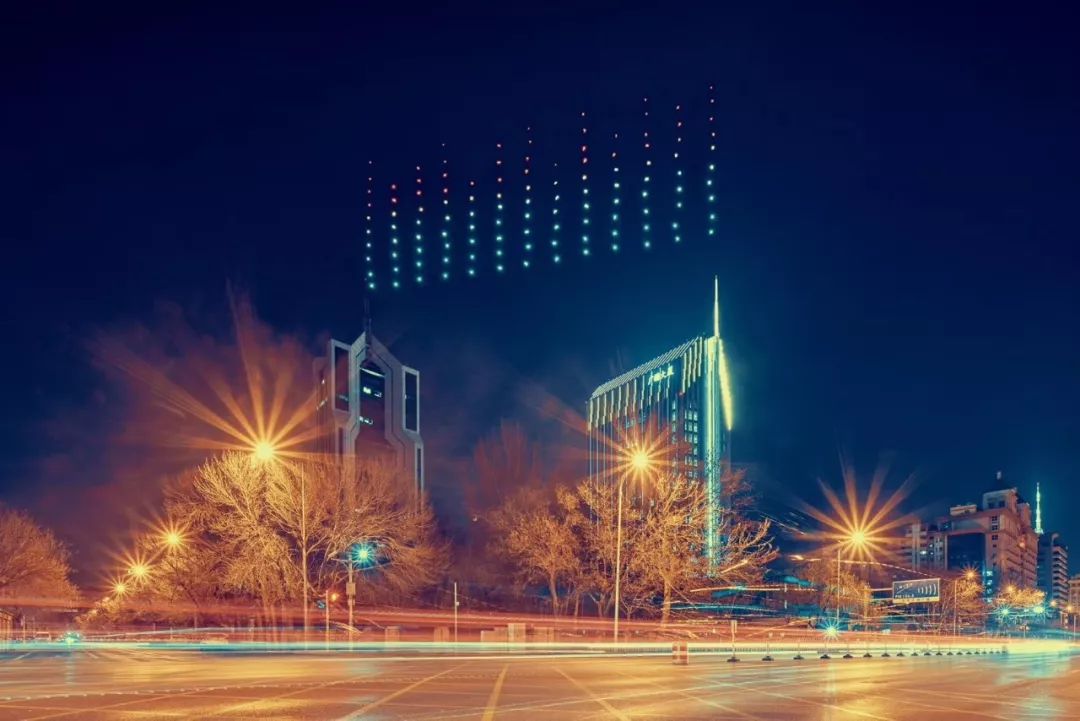 这次以“纪念天津日报、天津人民广播事业创立70周年”为主题的无人机灯光秀,由天津海河传媒中心与一飞智控(天津)科技有限公司联手为天津市民创意奉献。