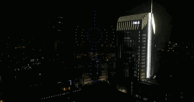 在这场长达8分钟的视觉大片里,无人机用酷炫的科技礼花,将天津广播、天津日报70年的故事娓娓道来,美轮美奂的表演,惊艳了城市夜空。