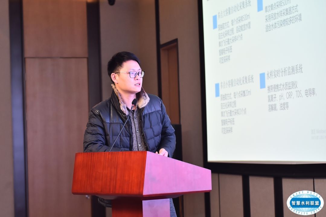 科卫泰技术专家王云龙先生做了《工业级无人机在“河湖长制”中的应用》的演讲,阐述了随着无人机技术的快速发展,工业级无人机可在水环境污染检测、河道巡查、洪涝灾害监测与救援等方面发挥巨大作用。传统的水样采集方法存在耗时长、费用高、特殊区域不易到达、恶劣环境可能会对人体造成伤害等问题。多旋翼无人机的发展和特性使得利用无人机进行水样采集和实时分析成为可能。无人机凭借 “天眼”优势,对河道的污染情况进行全方位无盲区的拍摄。相比普通的人力巡查,无人机河道巡查既克服了“流域广、面积大、地形复杂”等诸多因素限制,又能全方位掌握河域的基本情况,有效降低工作强度,提升河道巡查效率和精度。无人机空中遥感技术可通过搭载高精度的摄像机或测绘相机实现正射、三维建模等应用,为河道治理和规划提供详细基础资料和科学依据。工业级无人机将为“智慧水利”与 “河湖长制”建设增添强大助力。科卫泰公司也将紧密结合水利行业应用需求与前沿技术,推进工业级无人机在水利行业的深度应用与科技创新。