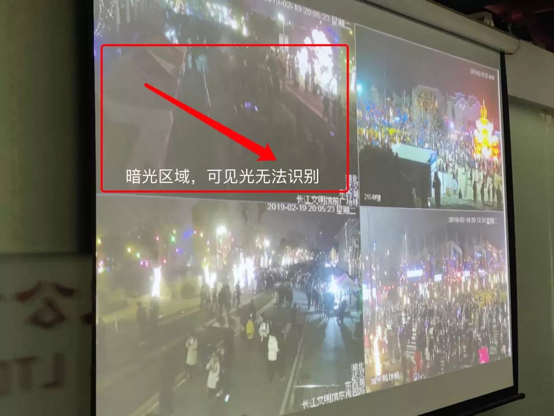 由于灯会在夜间展出的因素,常规的监控器在灯光较弱的区域无法清晰的记录,当晚园区一共安排了18处地面监控摄像头,暴露出以下不足: