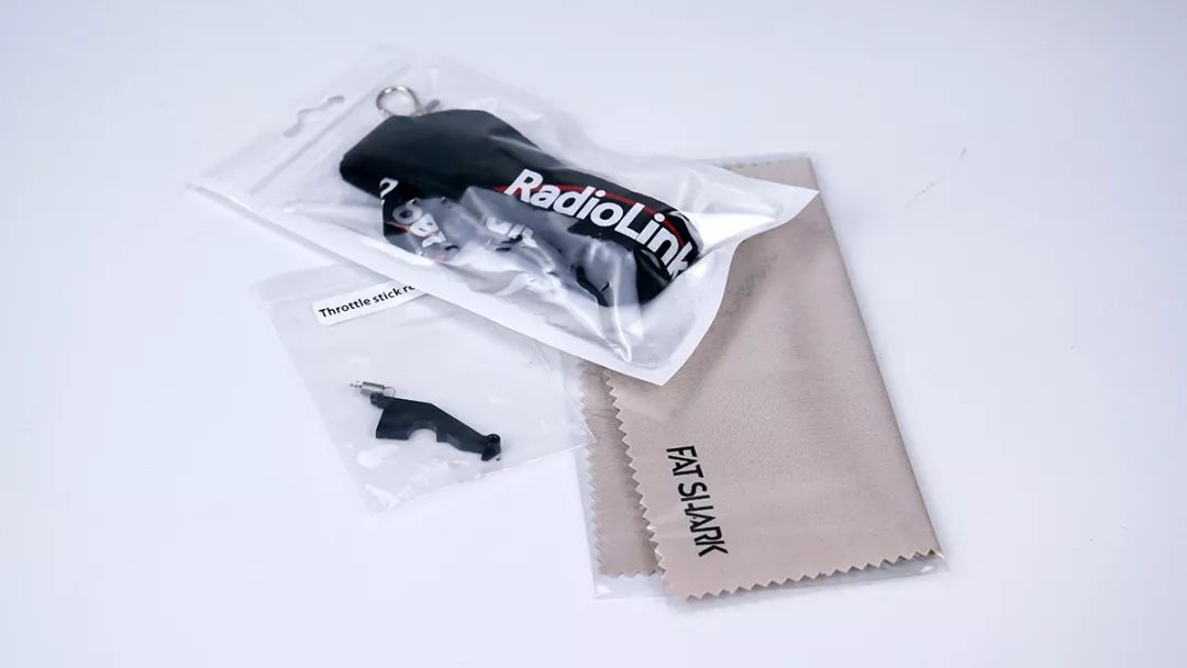 这下看得清楚了,遥控器挂绳,遥控器备用摇臂,乾丰5152的备用桨,还有FPV眼镜擦拭布,说明书。