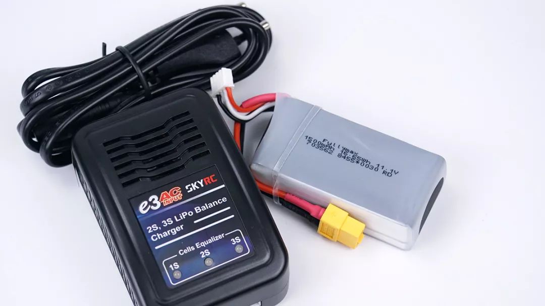 还配有一块富力 3s 11.1V,1500mAh容量的电池。以及SKYRC E3充电器。