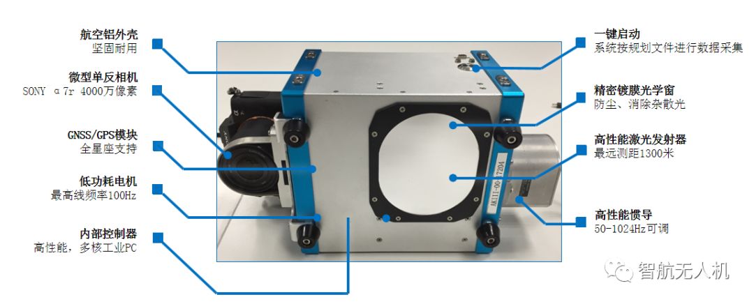 大视角场:激光雷达70°大视场角,最高点频能够达到60万点每秒;索尼微单相机视场角66°*46°,有效像素大于4000万像素,航带宽度约为航高的1.4倍,最大程度的保证了扫描区间多维度的完整性。