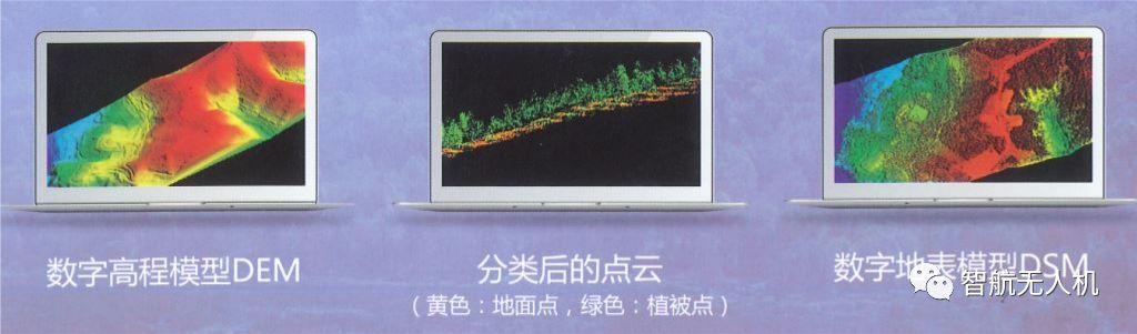 单架次飞行作业面积可达 12 平方公里,扫描距离接近 80km,采用可插拔 U 盘储存介质,在对点云分类后现场20分钟内可生成对应的数字高程模型(DEM)、数字地表模型(DSM)等。