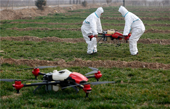 技术人员准备进行"植保无人机"春季化学除草作业/图 来源网络