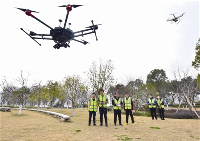 昨天,江北区新三江口公园内的公共绿地上,停了两个特别制作的航拍机,只见工作人员稍作调试后,两架机器稳步起飞,开始进行场地“巡逻”。原来,1月底起,江北区率先在全市内引进无人机航测开展绿地测绘工作,彻底摸清辖区绿地“家底”。