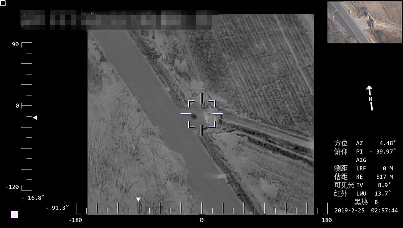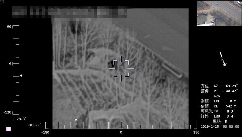 同一区域使用CW-30D大鹏搭载双光吊舱,根据任务需求切换成红外热成像镜头,顺着管道进行巡线,供暖泄漏的地方在屏幕上高亮点显示出来。