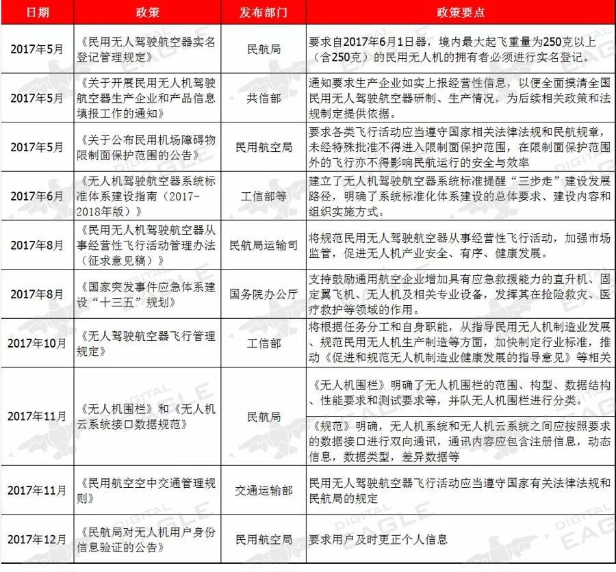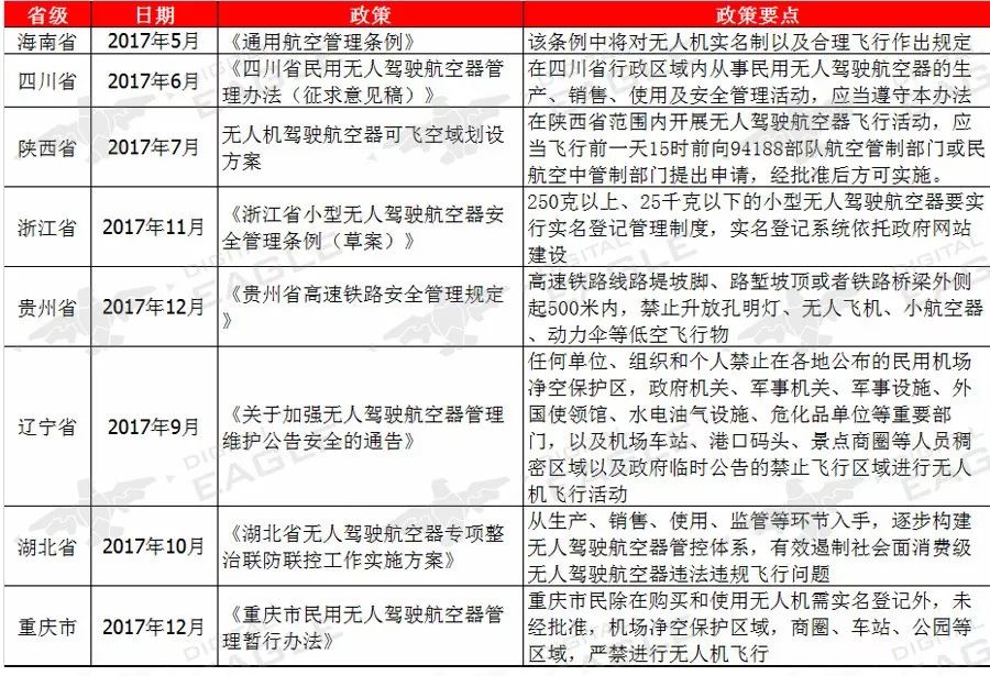 表/2017年来各国家级、省市级颁发的无人机相关管理规定