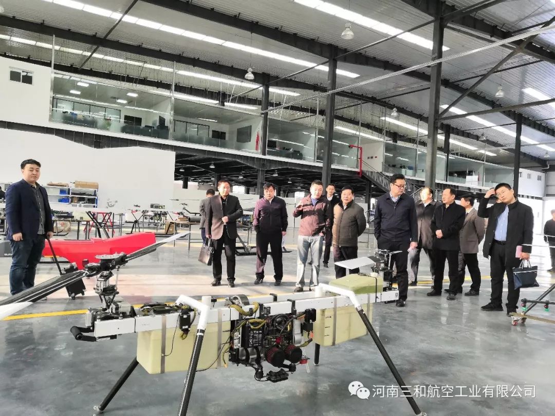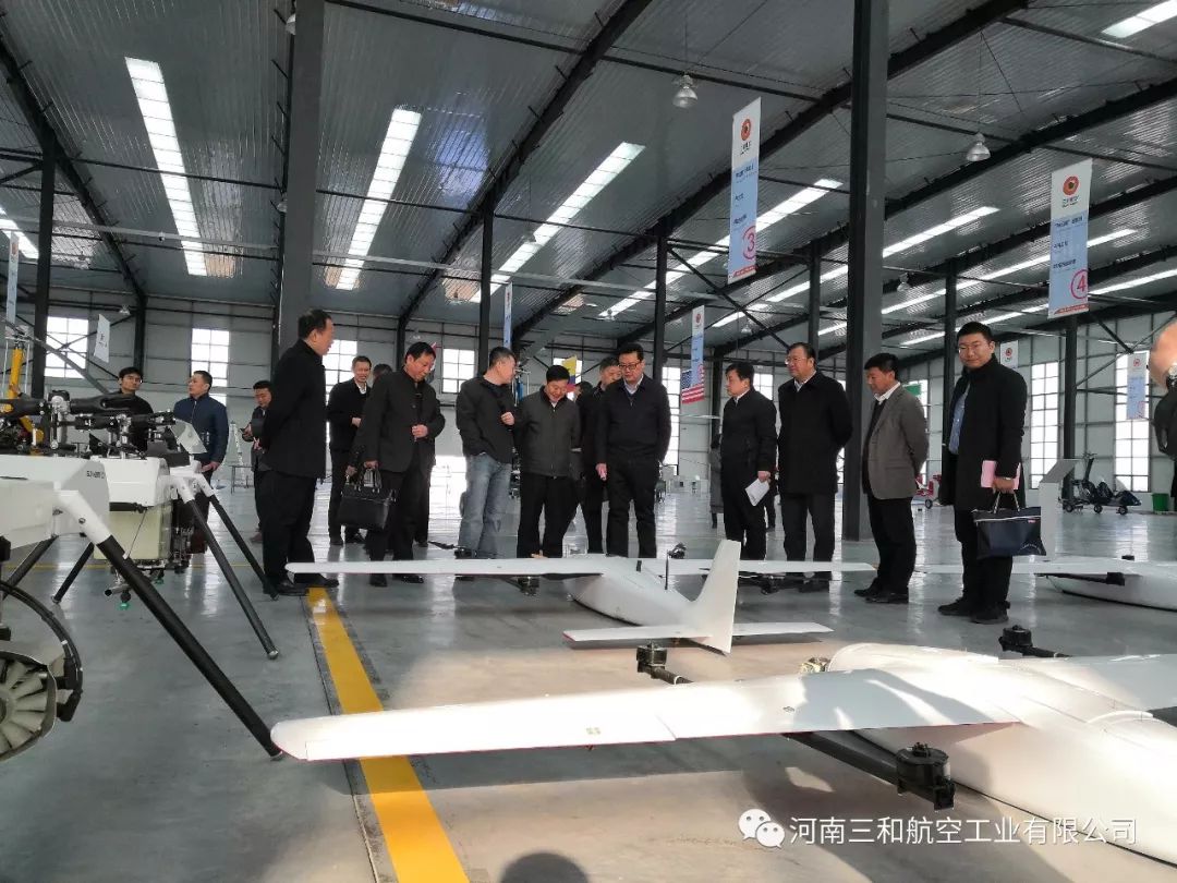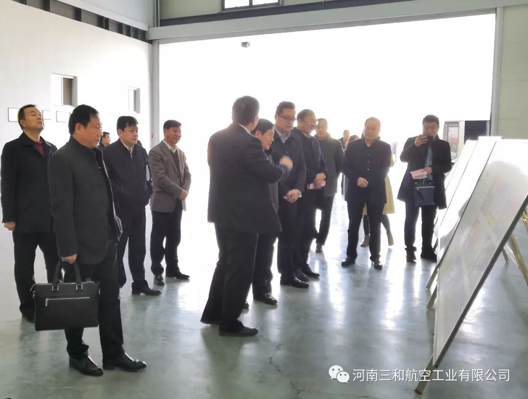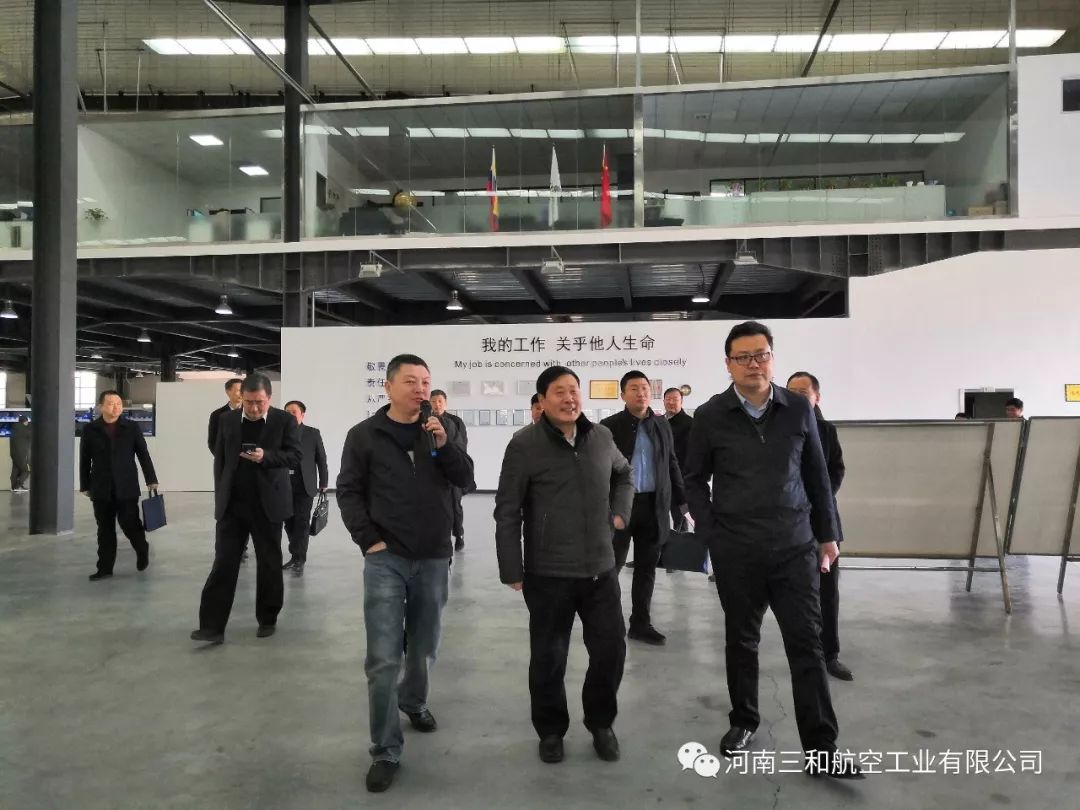 2019年3月7日,河南三和航空工业有限公司迎来了省发改委副主任刘文生、基础产业处调研员陈剑虹、基础产业处主任科员张琪、市发改委党组书记、主任杨东方,党组成员、调研员雷新宏,航港办副主任柴林、基础产业处处长李明超、高技术产业处主任科员陈春华、基础产业处副主任科员刘汝涛、市航空枢纽办副主任李天英、规划发展处处长王聪、规划发展处副处长王丽雪、规划发展处副主任科员连玉军、登封通航办主任、新区管委会副主任赵春营,副主任、大金店镇党委书记王韶亮,在上街区区委副书记李新军、副区长张向奥、郑州通航试验区管委会副主任孙喜忠、郑州通航试验区管委会副主任王晓等相关领导的陪同下,一同参观考察了我公司的产品总装线和生产车间。
