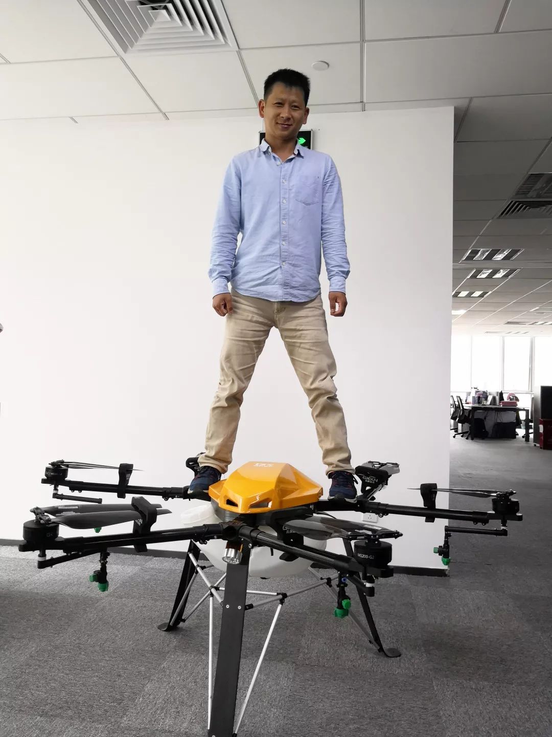 这位小哥哥体重130斤左右,高新M45支撑这个重量毫不费力结构设计就决定了耐用基因,M45的三角形机身结构作为业内首创,打破以往常规的矩式机身结构,从结构设计上就决定飞机耐用的基因。