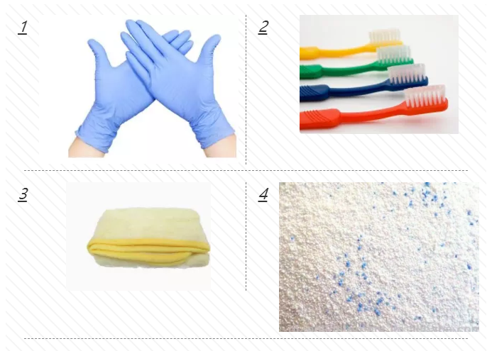 长筒橡胶手套一幅、小软刷(牙刷代替即可)一把、毛巾一块、洗衣粉若干