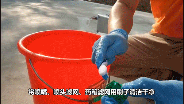 将喷嘴、喷头滤网、药箱滤网用刷子清洁干净。