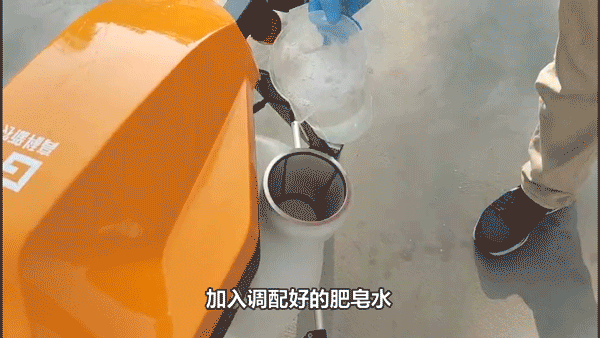 加入约三分之一清水 > 使清水充分冲刷,清洁药箱壁和药箱底部残留农药。