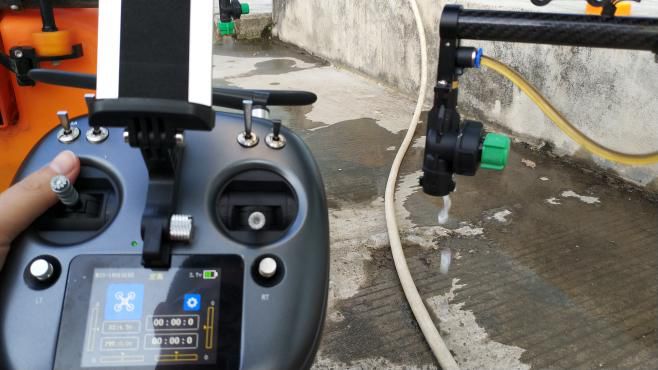 再次加入三分之一清水 > 将喷嘴装好,开启水泵,检查喷头喷雾是否正常 > 将剩余清水喷完或者开启药箱底部排水阀放干。