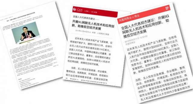 近年来无人机技术和产业飞速发展,应用领域不断扩大,据预计到2022年,全球行业无人机行业市场总值将达到150亿美元。全国人大代表,中国移动集团公司董事,浙江移动党委书记、董事长、总经理郑杰建议抓住5G发展契机,加快5G网联无人机技术和应用创新,助推低空经济发展。