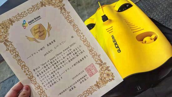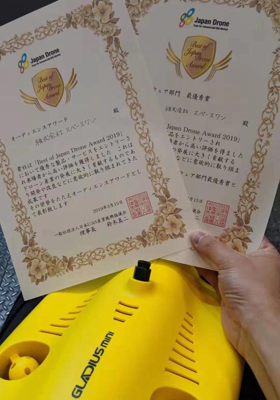 太平洋时间2019年3月15日,Japan Drone 2019(日本最大规模无人机展)毕展日,深圳潜行创新自主研发的新一代潜拍无人机鲛GLADIUS MINI经多轮角逐,荣获本次展会硬件部门最高奖与评审团特别奖,成为最大黑马。