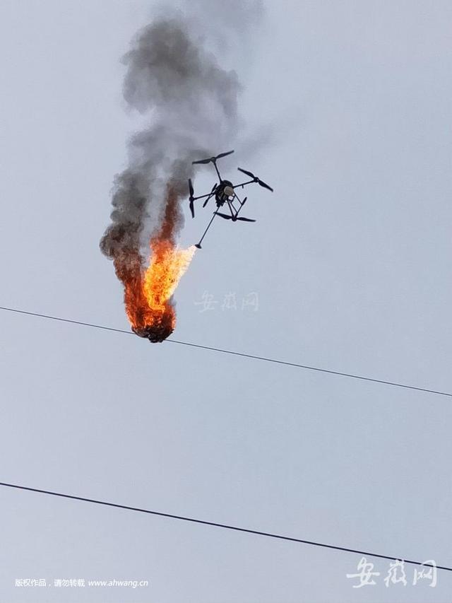 3月26日,一架无人机在国网淮南供电公司巡检员的操作下,喷火将高压线上缠绕的异物烧毁,排除异物造成线路短路危险。据介绍,这是该市首次使用无人机清除空中高压线上的异物。