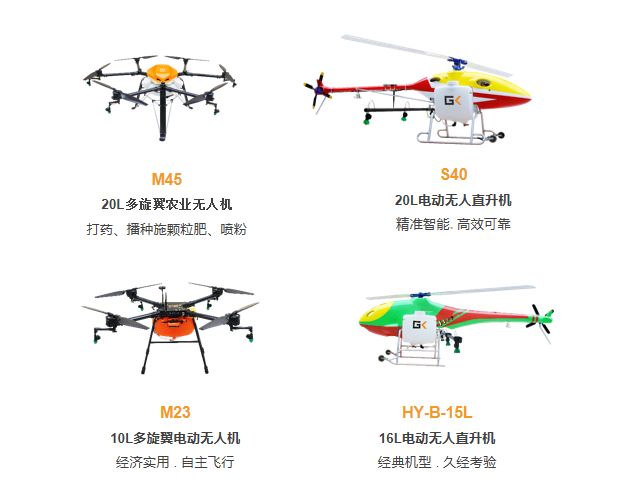 在这次演示会上,高科新农飞机阵容强大,派出了直升机和多旋翼全系产品,包括: