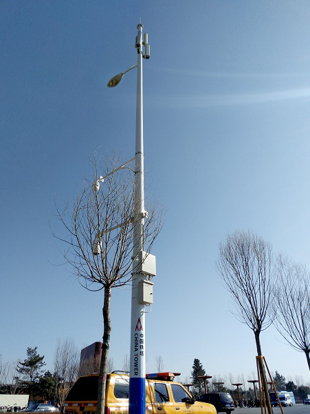 在园区内,这样的智慧灯杆共有74个。而在园区外的13条道路上,这样的智慧灯杆还有112根,充分满足了园区周边重点道路的通信及安防需求。