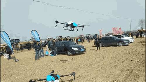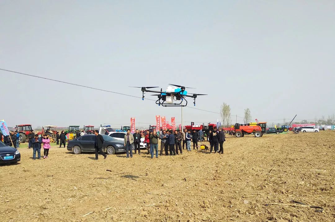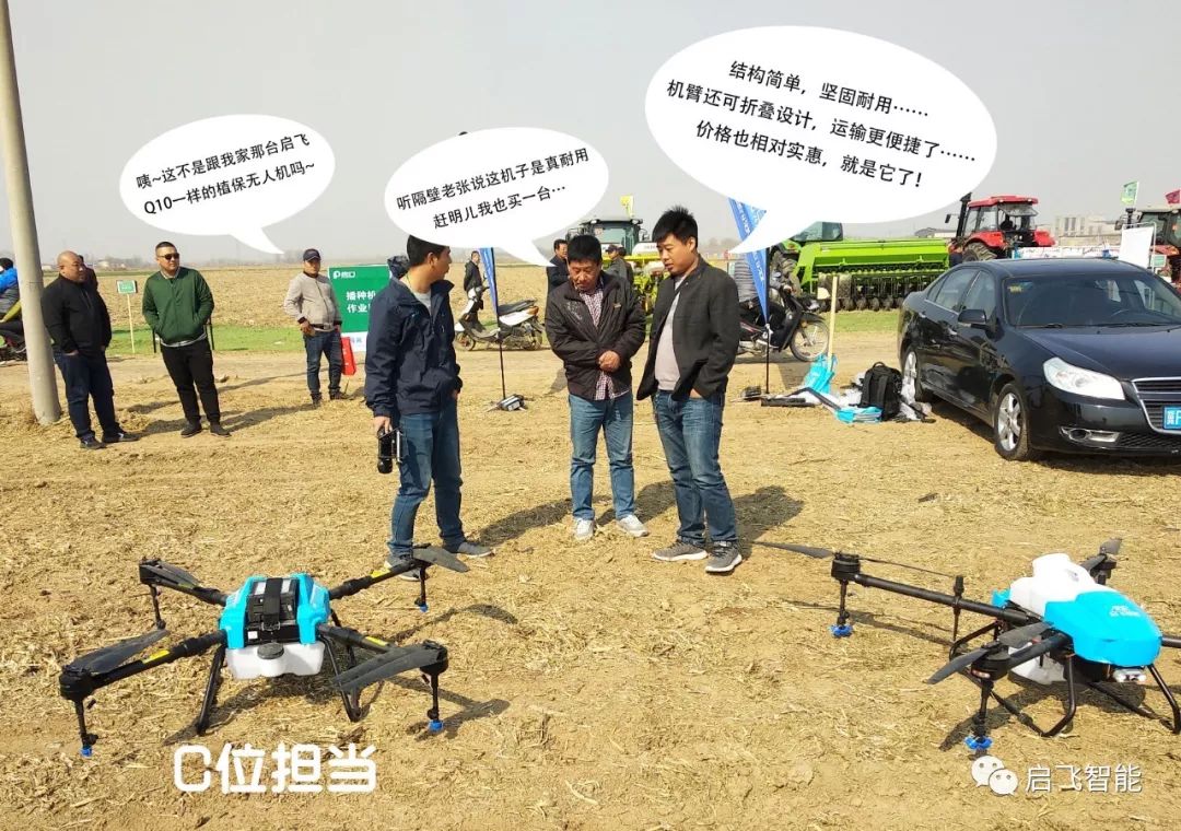 作为新型植保机械代表之一的启飞植保无人机在本次庞口商贸大会田间演示环节进行作业演示。现场人流攒动,纷纷被A16的“飒爽英姿”所吸引。