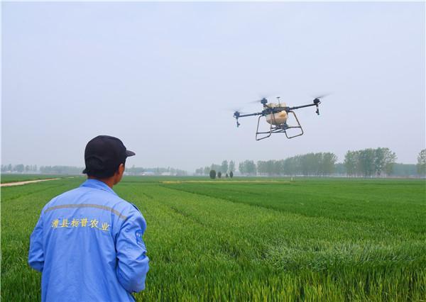 “无人机采取AB点作业、全程监控,即不漏喷,也不会重复喷。”据植保公司相关负责人介绍,排除雨天、大风天等因素,100架装灌着农药、营养液的无人机分散在延津县各处麦田工作,一天可喷防3万亩左右,相当于5000个劳动力一天的工作量。