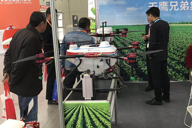 目前,农机化正由粮食作物向经济作物、设施农业发展,由平原地区向丘陵山区发展,此次展会上,植保无人机成为一大看点。在今年的农机展上,天鹰兄弟推出的M12智能植保无人机,操作实现自动化,简单易上手,起降灵活,空中喷施作业,非常适合丘陵山地的农林植保。据天鹰兄弟公司人员介绍,天鹰兄弟是同时具备多旋翼和单旋翼自主研发能力的企业,为用户提供高效的播种、施肥、农药喷洒解决方案。