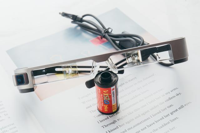 来看看眼镜主体,要比想象中秀气小巧很多,相对巨无霸体积的VR设备来说,BT-300就是小白兔。
