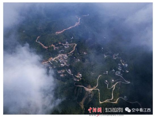 《深山扶贫路》是2018年在江西赣州市于都县仙下乡龙溪村航拍的一张照片。龙溪村各个村小组零星分散在半山腰。该村的扶贫书记袁勇锋要想走完该村所有的贫困户,开车大概需要一天时间,因为路实在太难走了。路有多难走呢?文字的描述不能让读者身临其境,照相机拍的照片又不能足以体现此路的高、陡、险,唯有无人机能把现场的情况体现得淋漓尽致。