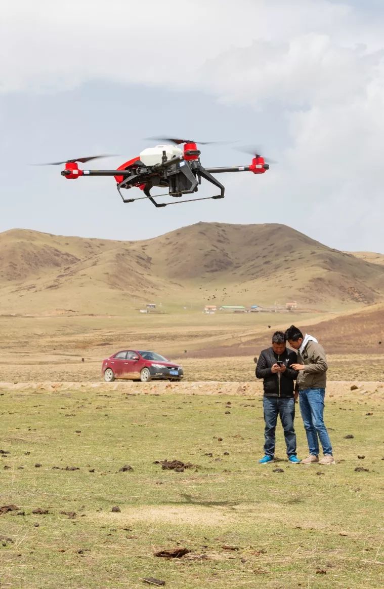 4 月 25 日,极飞科技在四川红原县海拔 3600 米的若尔盖草原上,发布了无人机智能播撒系统,同时联合红原县政府,成立了首支藏民飞防队,完成万亩草原播种作业,加快草原生态恢复的同时,帮助当地牧民创收、增收,实现生态保护与精准扶贫双赢发展。