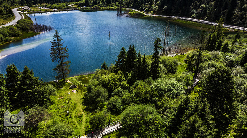 高山冰雪融化汇聚而成的达古湖,是景区中最妖娆的湖泊,也是游客必到的打卡景点。