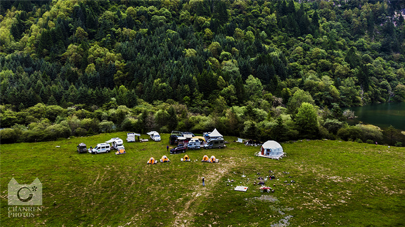 除了住酒店、客栈以外,最值得称道的是,达古冰山景区非常适合房车露营,露营区建在金猴海附近的一片草坪上,也是藏酋猴出没的地方。