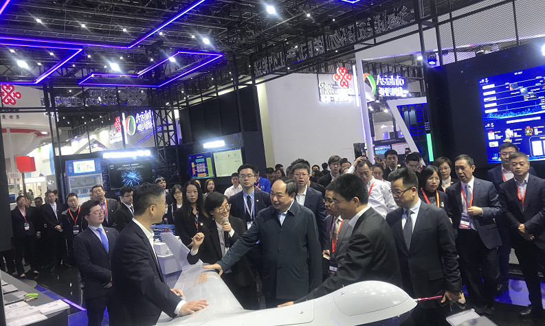 4月25日,在联通合作伙伴大会上,中国联通集团总经理李国华、副总经理买彦州、副总经理梁宝俊等领导莅临研究院无人机展台参观指导。