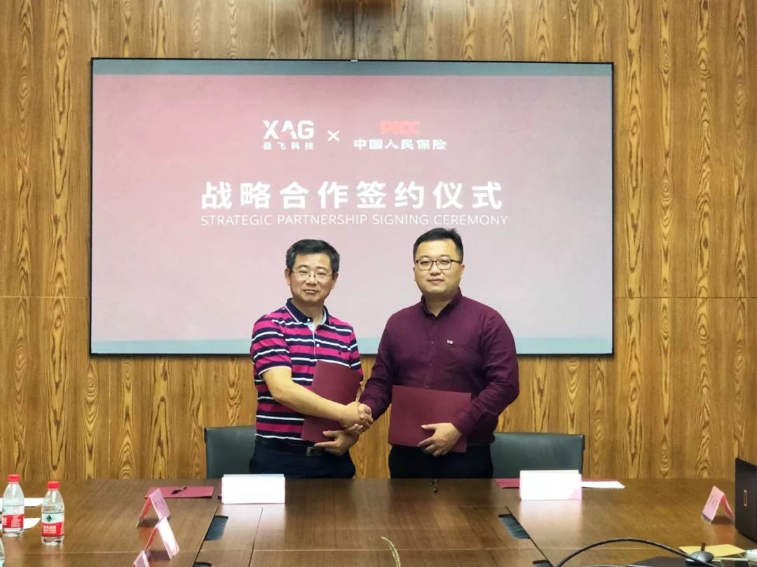 4月23日,极飞科技与中国人民财产保险股份有限公司(以下简称“中国人保财险”)达成了战略合作,双方将以农业保险为切入点,共同开展智慧农业领域的合作业务,并通过完善农村金融体系,助力精准扶贫,支持乡村建设。