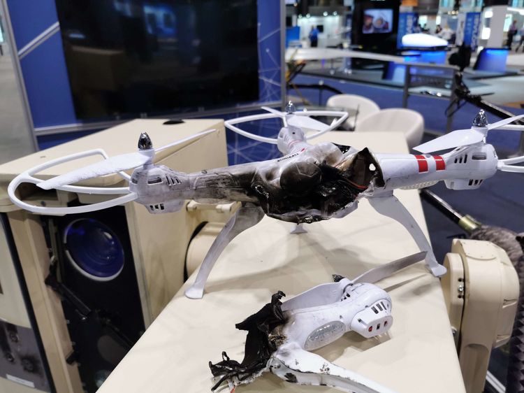美国时间2019年4月30-5月2日,2019美国芝加哥国际无人系统展暨无人机机器人展(2019AUVSI's XPONENTIAL) 上来自瑞士无人系统解决方案开发商Uavos公司展示一款反无人机装置,其独特的外观和杀伤效果(受损的多旋翼无人机)引起了不少观众的关注。
