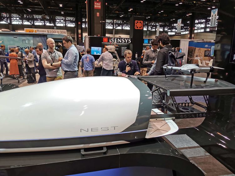 在2019美国国际无人系统展暨无人机机器人展(2019AUVSI's XPONENTIAL)上,来自拉脱维亚AtlasDynamics公司展示了其新研发的智能防护充电平台,这款产品可以放在室外固定地点使用也可以放在移动的车辆上使用。
